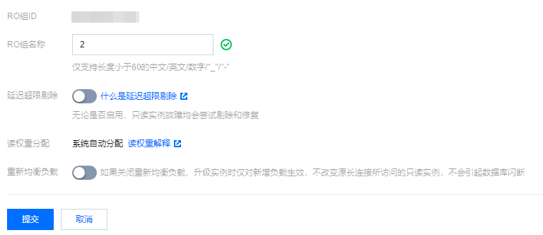 3. 在 RO 组配置页,配置 RO 组信息,单击提交。