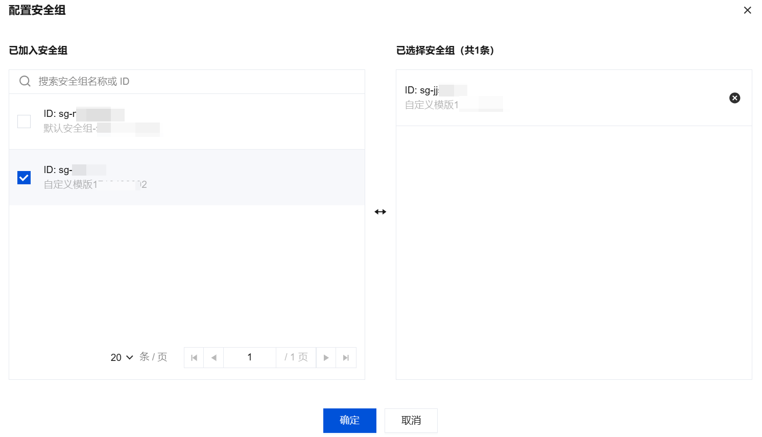 3. 在弹出的对话框,选择需要绑定的安全组,单击确定,即可完成安全组绑定云数据库的操作。