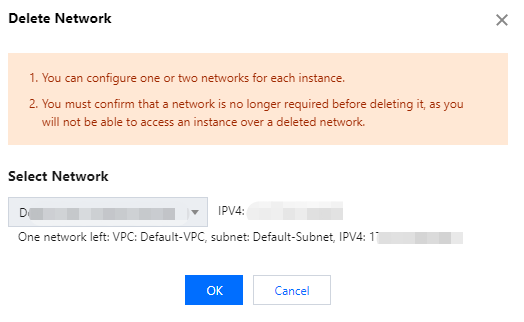 删除网络后,无法通过此网络访问到实例,请确保该网络的确不再使用。