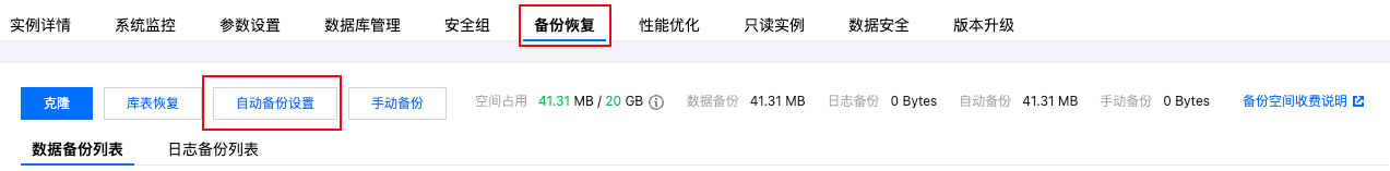 日志备份保留时间 | 日志备份数据的保留时间设置,可保留7~1830天,默认为7天。 |