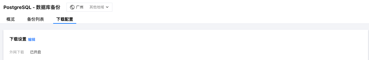 2. 选择下载配置页,可查看对应地域的备份下载配置信息,单击编辑,对下载限制条件进行配置。