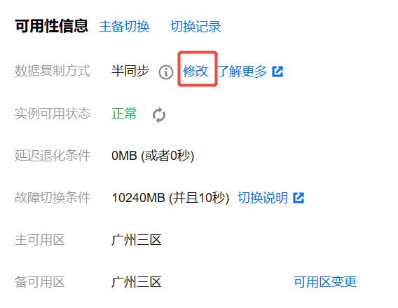 3. 单击修改,可修改当前实例的数据复制方式。