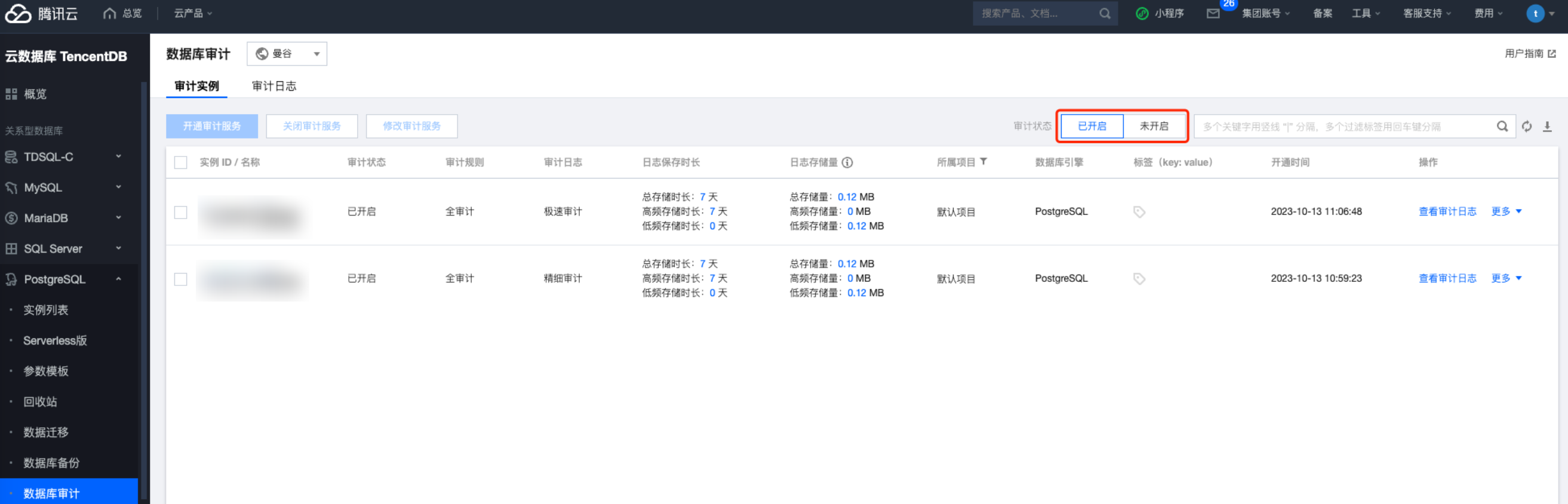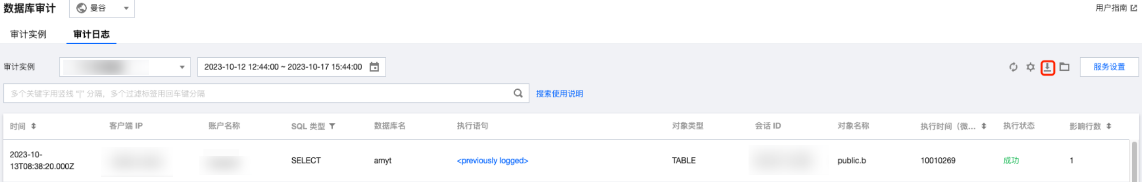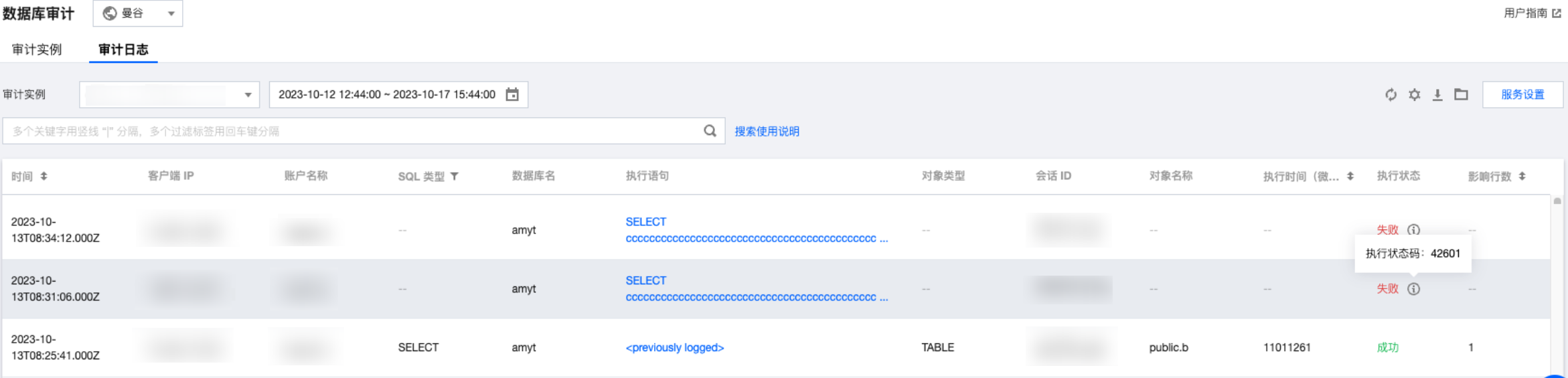 SQL 命令详情 | 输入 SQL 命令详情,多个关键字使用换行符进行分隔。 SQL 命令详情搜索不区分大小写。 当匹配类型为包含/不包含时,仅支持分词维度模糊搜索,不支持通配符模糊搜索。 |