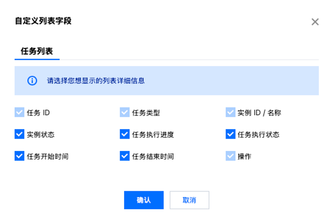 调整实例配置 | { "Cpu":"2 core"//实例调整前 CPU 配置 "Memory":"4 GiB"//实例调整前内存配置 "Storage":"10 GB"//实例调整前存储空间配置 } | { "Cpu":"2 core"//实例调整后 CPU 配置 "Memory":"4 GiB"//实例调整后内存配置 "Storage":"20 GB"//实例调整后存储空间配置 "Message":"success"//任务具体返回,success 代表成功,其他状态请参考具体信息。 } |