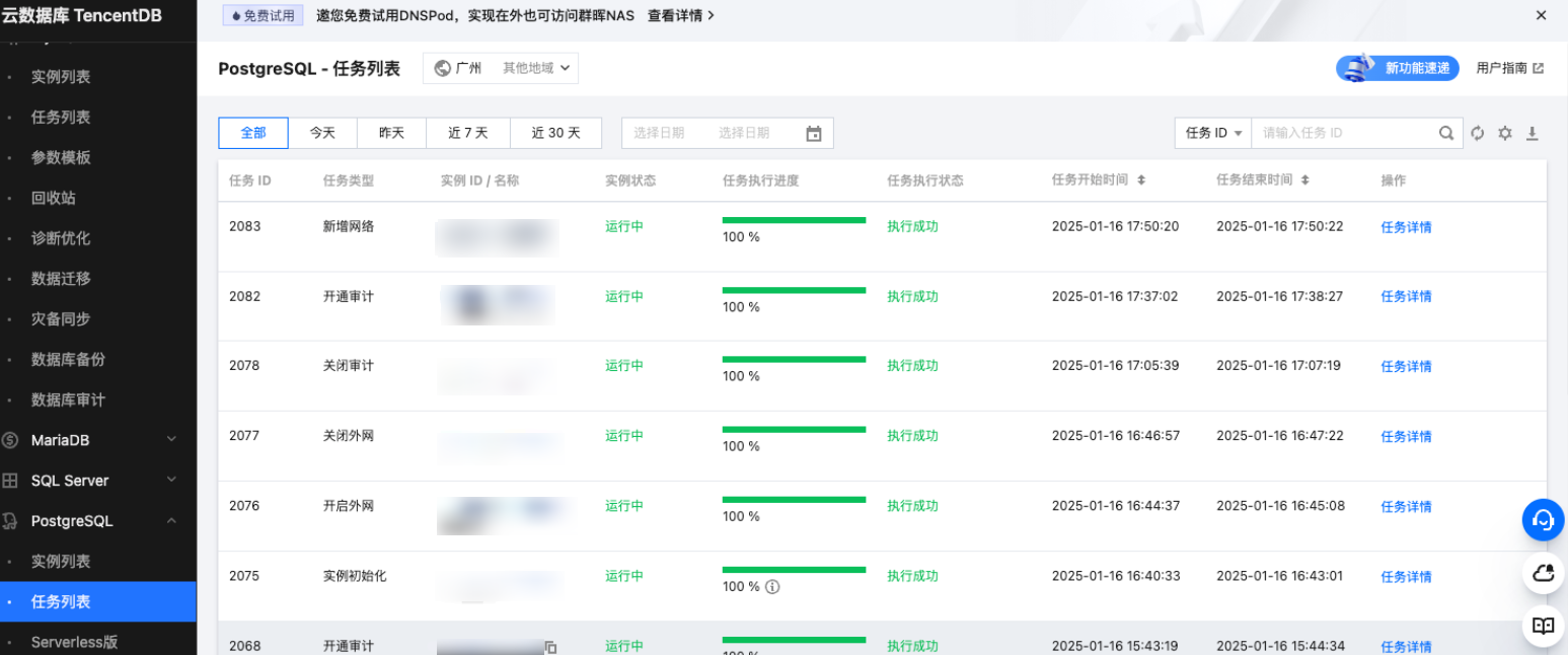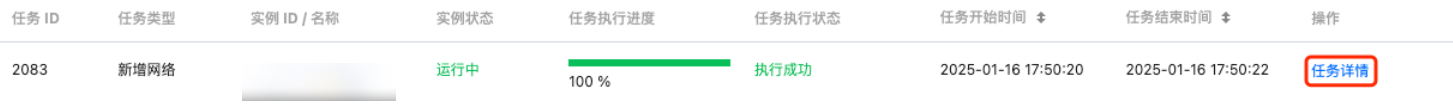 删除网络 | { "DBInstanceId":"postgres-6s1kuw28"//实例 ID "SubnetId":"subnet-piadji8r"//子网 ID "Vip":"10.0.10.15"//要删除的 VIP "VpcId":"vpc-fz41fhgo"//私有网络 ID } | { "DBInstanceId":"postgres-6s1kuw28"//实例 ID "DBInstanceNetInfo":{//删除网络详情 "Address":"" "Ip":"10.0.10.15" "Port":5432 "Status":"closed" "NetType":"private" "VpcId":"vpc-fz41fhgo" "SubnetId":"subnet-piadji8r" "ProtocolType":"postgresql" } } |