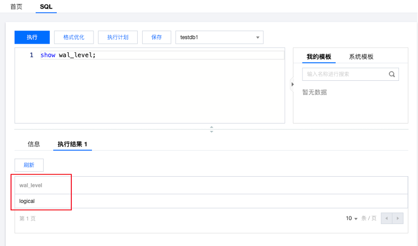 修改后,可登录实例,使用以下查询语句查看 wal_level 是否修改成功。