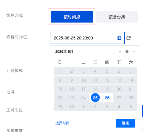 按时间点:在备份文件可追溯的时间范围中指定时间点进行恢复。