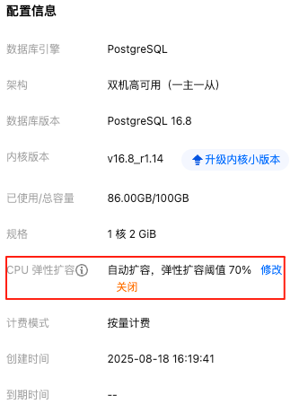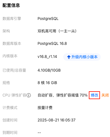 2. 实例详情 > 配置信息 > CPU 弹性扩容,单击修改