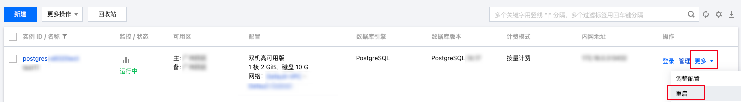 重启操作经常是维护云数据库的一种必要手段,重启 PostgreSQL 实例相当于本地服务器的重启数据库(服务和进程)操作。