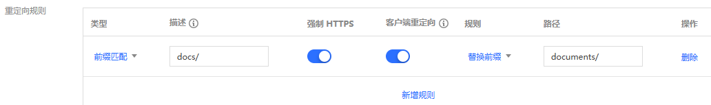 规则:重定向规则的替换规则,包括替换路径和替换前缀。