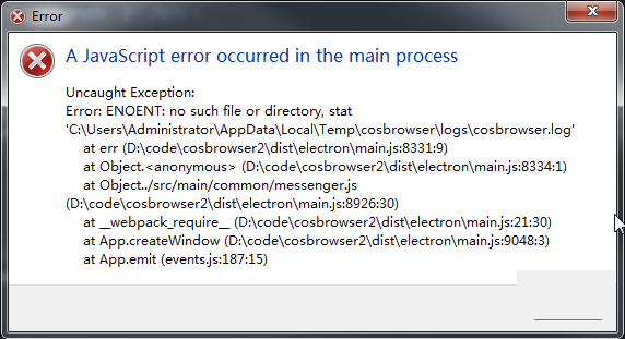 如果弹出错误 “no such file or directory, stat 'C:\\Users\\XXX\\AppData\\Local\\Temp\\cosbrowser\\logs\\cosbrowser.log'” 并且应用无法使用怎么办?