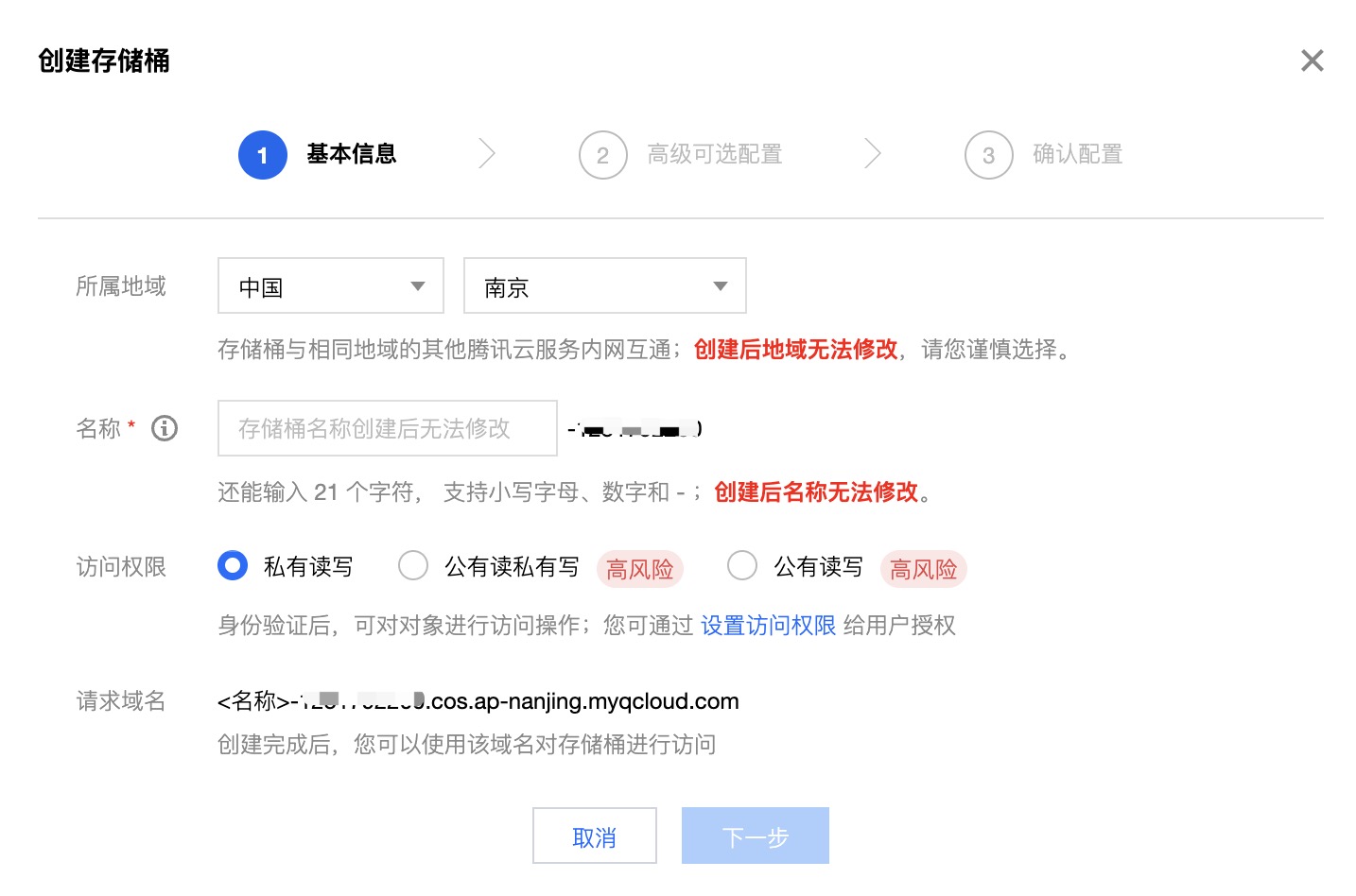 创建存储桶弹窗