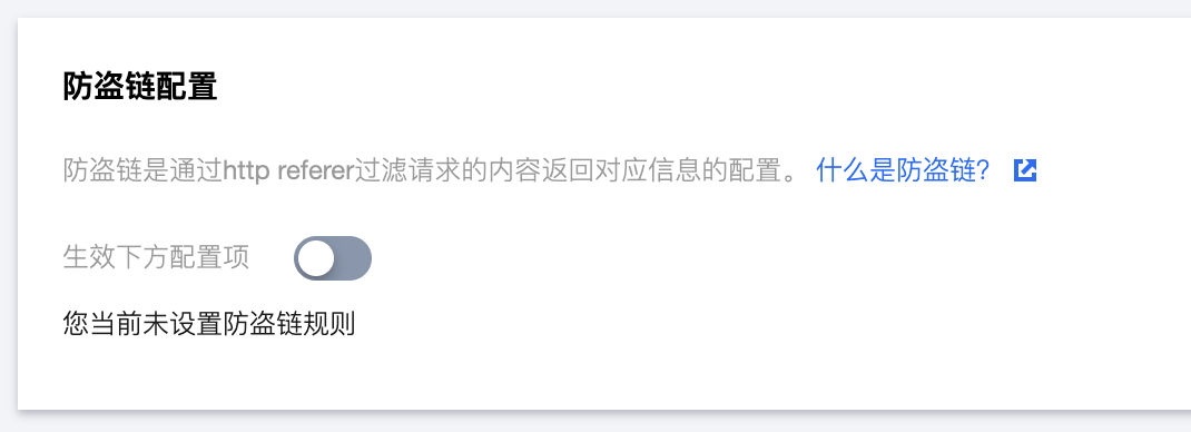 防盗链也是最常见的防护手段之一,其原理是通过 HTTP 的 Referer 头部进行判断校验,用户可通过配置白名单或黑名单,来允许或者禁止某些访问来源。