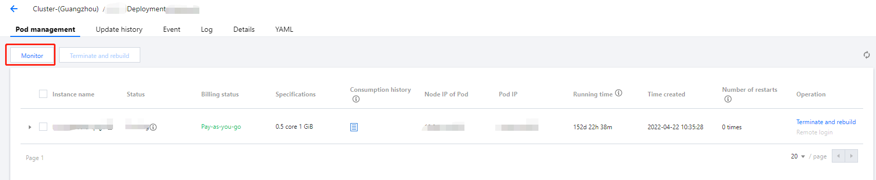 3. 单击监控,即可查看该工作负载的监控信息。如下图所示: