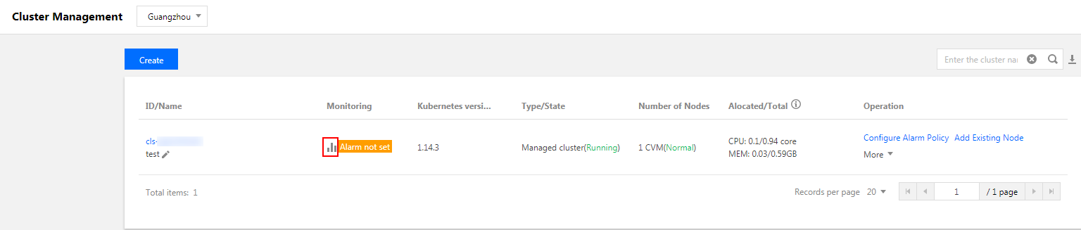 1. 选择需要查看的集群ID/名称,进入该集群的管理页面。