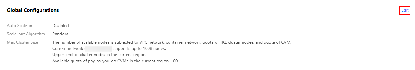 1. 在节点池列表页面,单击“全局配置”模块右上角的编辑。如下图所示: