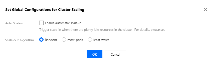 2. 在弹出的“设置集群伸缩全局配置”窗口中,参考以下信息进行设置。如下图所示: