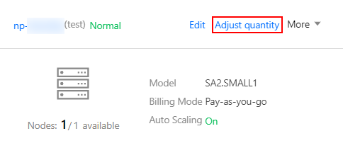 1. 单击目标节点池名片页右侧的调整数量。如下图所示: