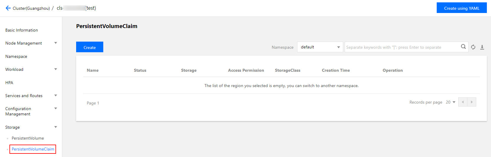 1. 在集群列表中,选择需创建 PVC 的集群 ID。