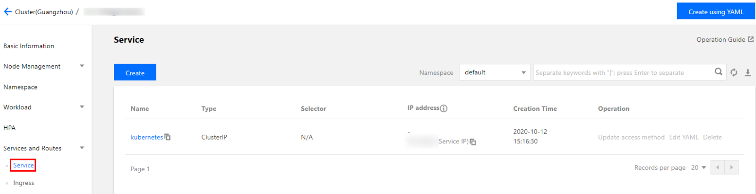 1. 选择服务与路由 > Service,在 Service 页面单击 Service 所在行右侧的编辑YAML。