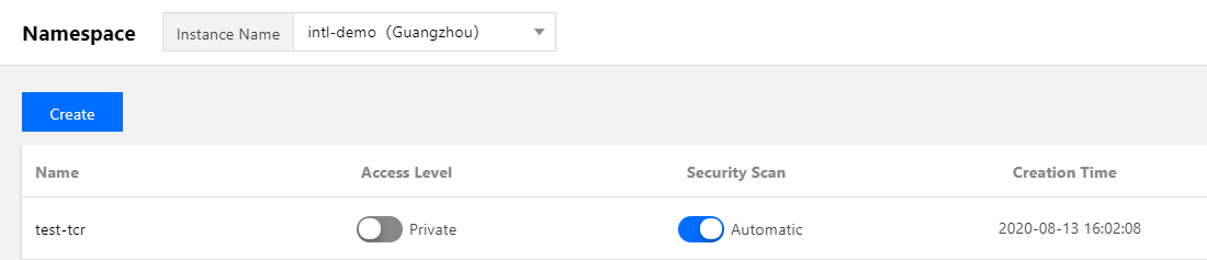 新建的 TCR 企业版实例内无默认命名空间,且无法通过推送镜像自动创建。请参考 创建命名空间 按需完成创建。