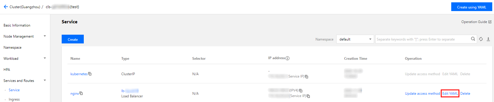 apiVersion: v1kind: Servicemetadata:name: nginxspec:type: LoadBalancerports:- port: 80protocol: TCPname: httpselector:app: nginxversion: v1