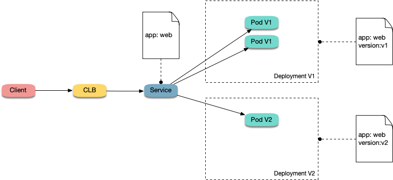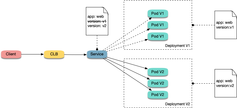 version 标签,让 Service 同时选中两个版本的 Deployment 的 Pod。YAML 示例如下:apiVersion: v1kind: Servicemetadata:name: nginxspec:type: LoadBalancerports:- port: 80protocol: TCPname: httpselector:app: nginx