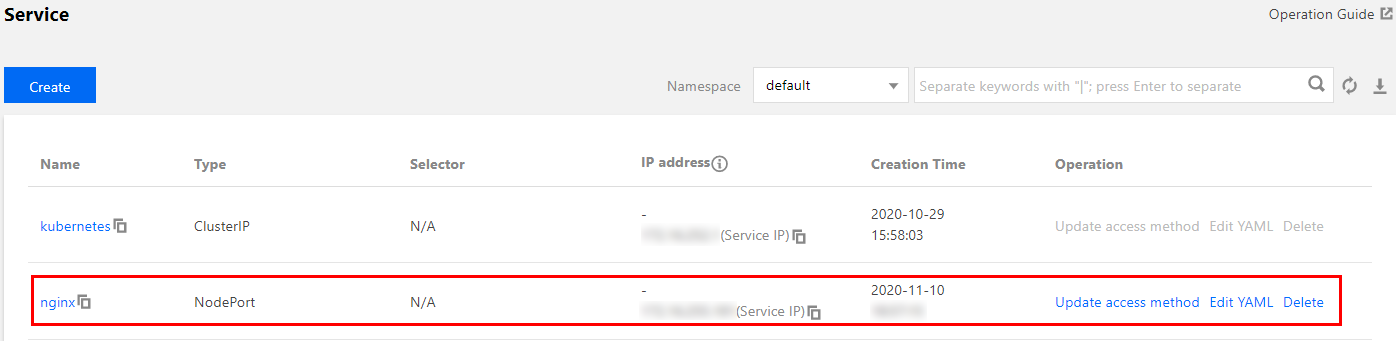 腾讯云负载均衡器(CLB 七层) 默认会将客户端真实源 IP 放至 HTTP Header 的 X-Forwarded-For 和 X-Real-IP 字段。当服务流量在经过 Service 四层转发后会保留上述字段,后端通过 Web 服务器代理配置或应用代码方式获取到客户端真实源 IP,详情请参见 负载均衡如何获取客户端真实 IP。通过容器服务控制台获取源 IP 步骤如下: 1. 为工作负载创建一个主机端口访问方式的 Service 资源,本文以 nginx 为例。如下图所示: