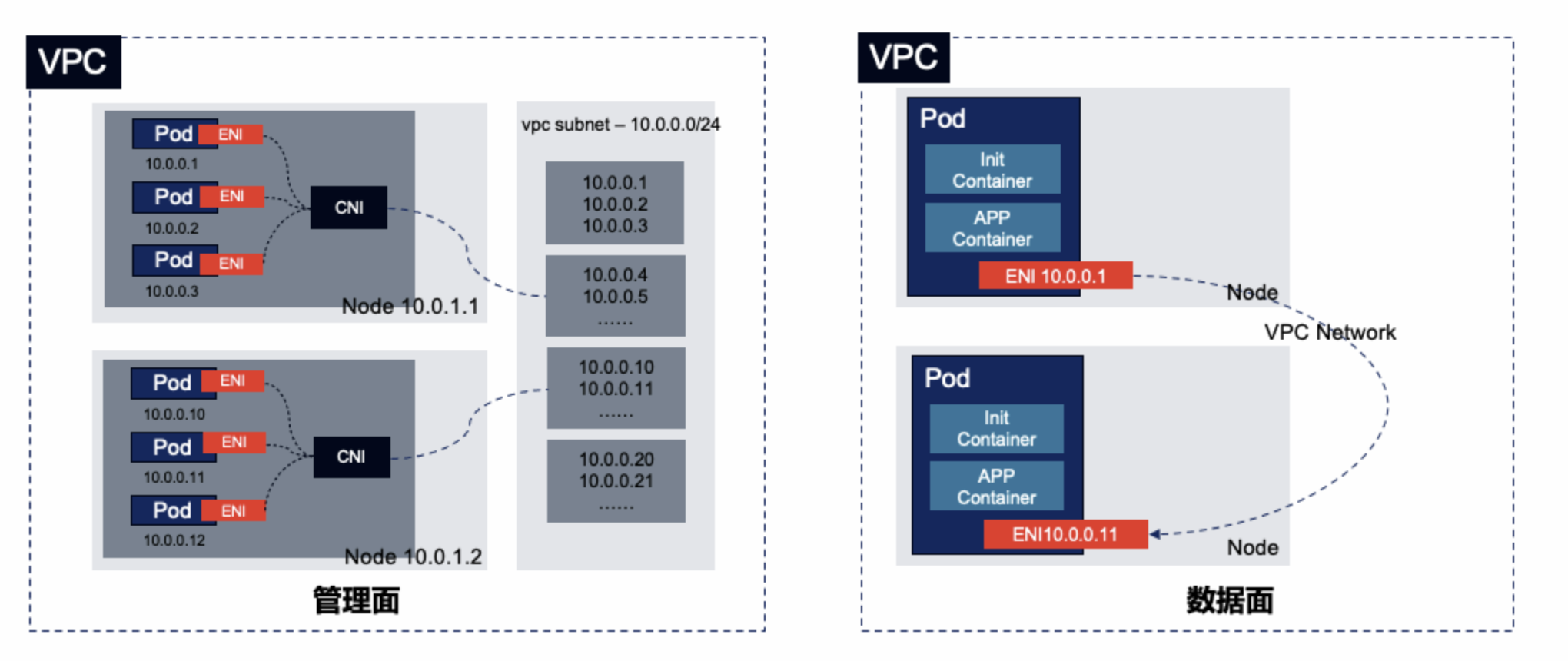 有 VPC-CNI 模式的统一限制: