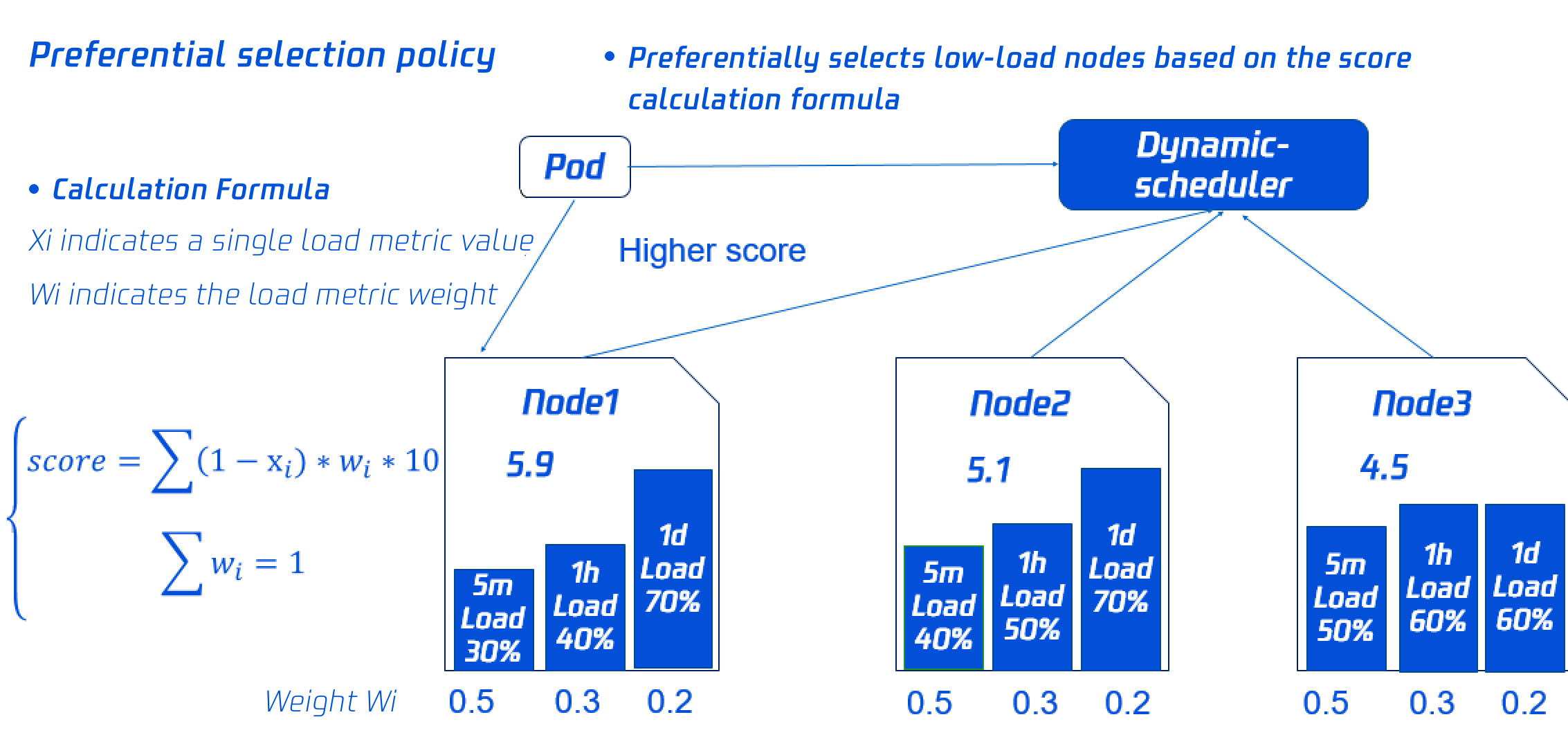 5分钟平均 CPU 利用率权重 | 该权重越大,过去5分钟节点平均 CPU 利用率对节点的评分影响越大。 |