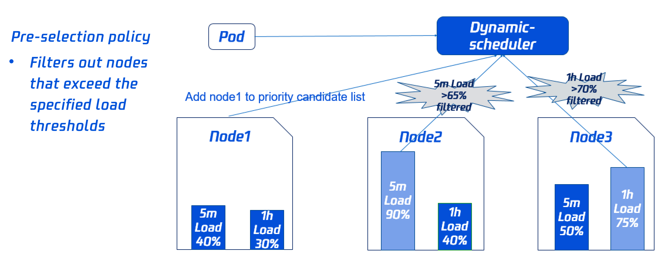 5分钟平均 CPU 利用率阈值 | 节点过去5分钟平均 CPU 利用率超过设定阈值,不会调度 Pod 到该节点上。 |
