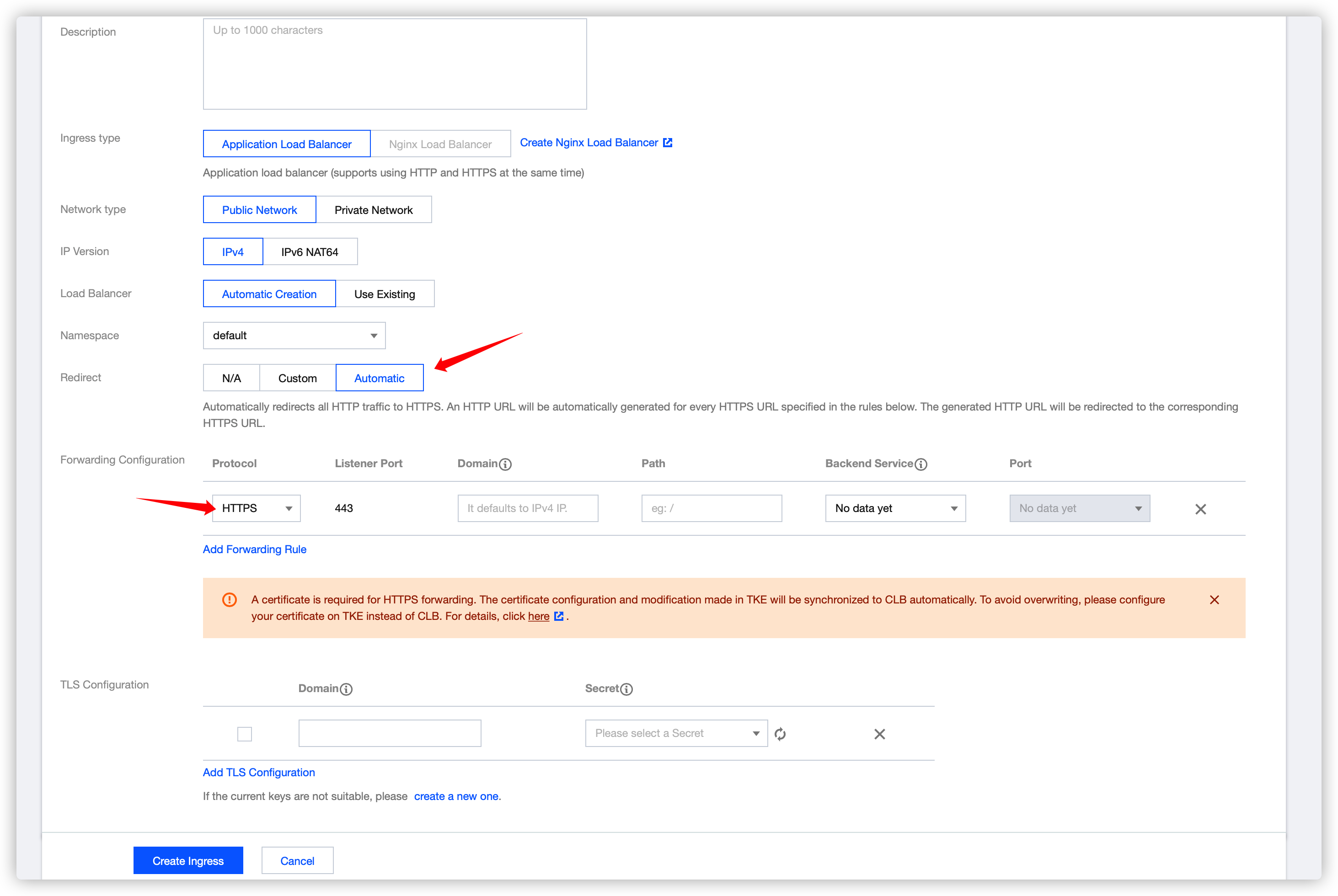 http://tencent.com 和 https://tencent.com 需要访问到同一个 Web 服务。https://tengxun.com 更换为 https://tencent.com,两个域名访问到同一个 Web 服务。ingress.cloud.tencent.com/rewrite-support: "true"