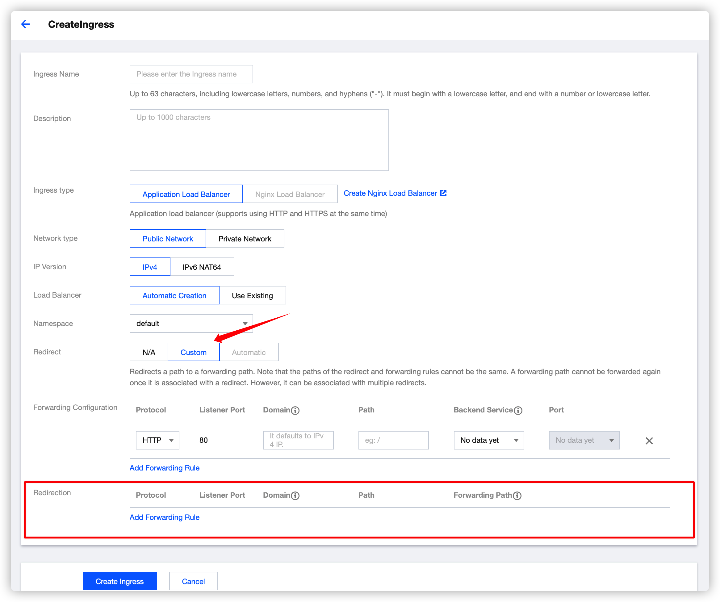 ingress.cloud.tencent.com/rewrite-support: "true" # 表示允许重定向