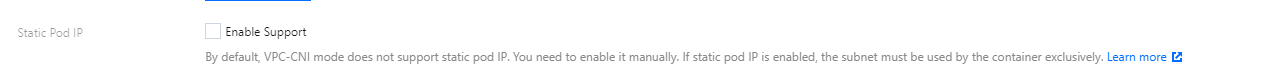 已绑定数量 > 最大可绑定值,则会解绑网卡/IP,使已绑定数量 = 最大可绑定值。kubectl edit deploy tke-eni-ipamd -n kube-system。spec.template.spec.containers[0].args 中加入以下启动参数修改默认预绑定值。修改后,ipamd 会自动重启并生效。默认值只影响新增的节点:# 共享网卡模式最小预绑定默认值,默认值为 5- --ip-min-warm-target=3# 共享网卡模式最大预绑定默认值,默认值为 5- --ip-max-warm-target=3# 独占网卡模式最小预绑定默认值,默认值为 1- --eni-min-warm-target=3# 独占网卡模式最大预绑定默认值,默认值为 1- --eni-max-warm-target=3
