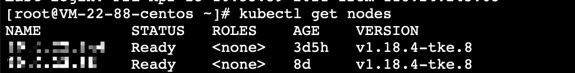 2. 当命令执行结果显示如下图时,说明已成功访问集群并拉取 Node 列表。
