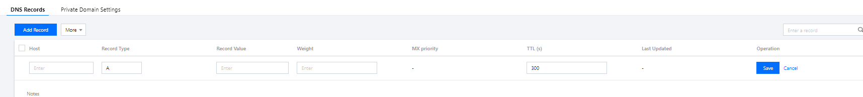 1. 单击上述创建的私有域名称,进入“解析记录”页面。