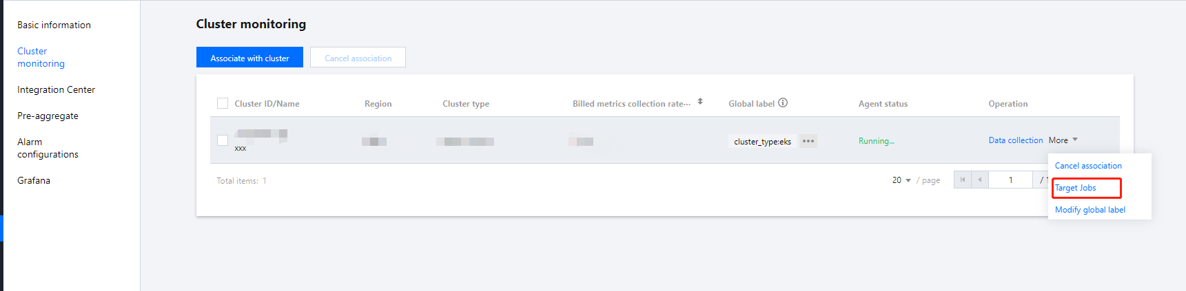 您还可以在该实例的“集群监控”页中,单击集群名称右侧的更多 > 查看采集目标,查看该集群下所有的采集目标情况。 查看已有配置