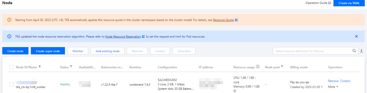 如果没有调整节点池期望节点数而直接删除节点,节点池会检测到实际节点数不足以满足声明式节点数量,然后会创建一个新节点并将其加入节点池。因此,我们推荐按照以下方式进行节点删除操作: