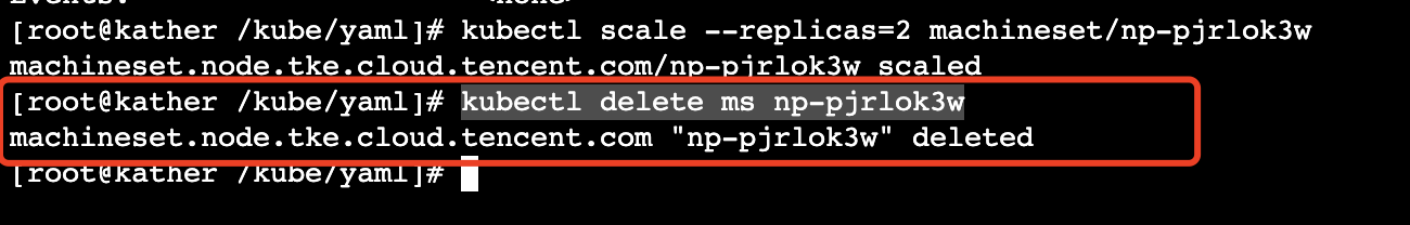 5. 根据命令kubectl delete ms np-pjrlok3w 删除节点池。