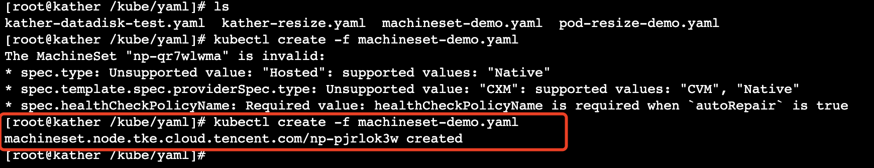 1. 执行命令kubectl create -f machineset-demo.yaml根据上述 YAML 创建 MachineSet: