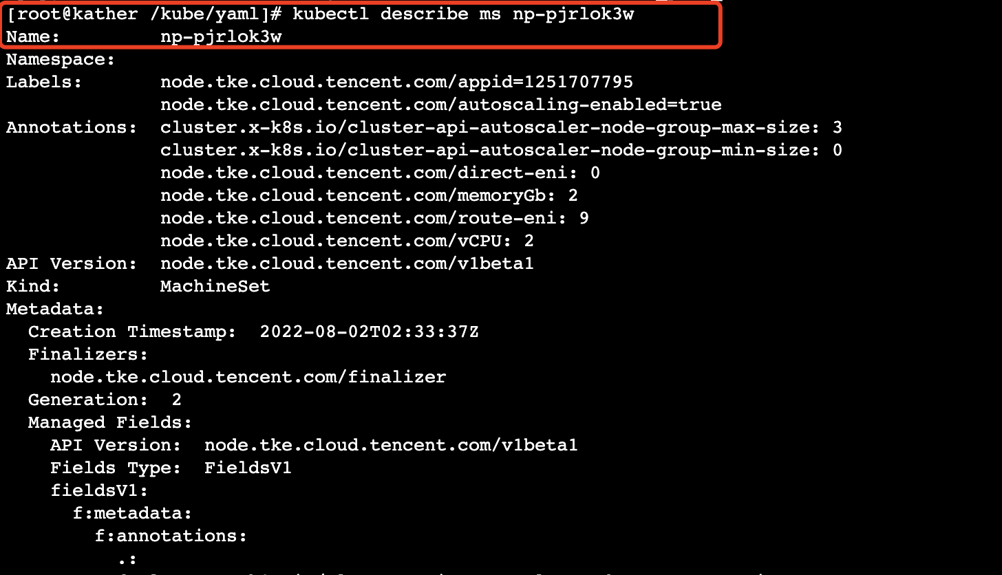 3. 根据命令kubectl describe machineset np-pjrlok3w查看 MachineSet np-pjrlok3w 描述: