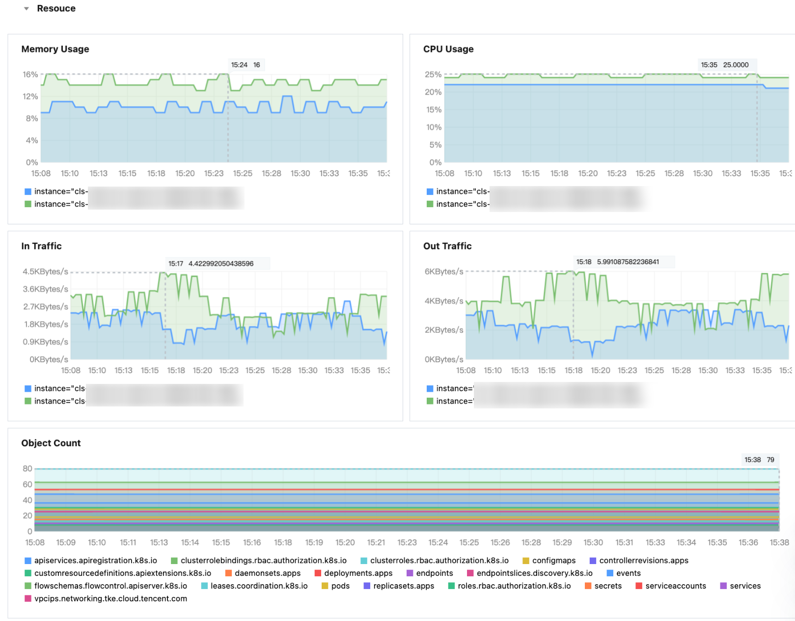 Object Count | etcd 资源对象数 | apiserver_storage_objects | 资源对象数量。 |