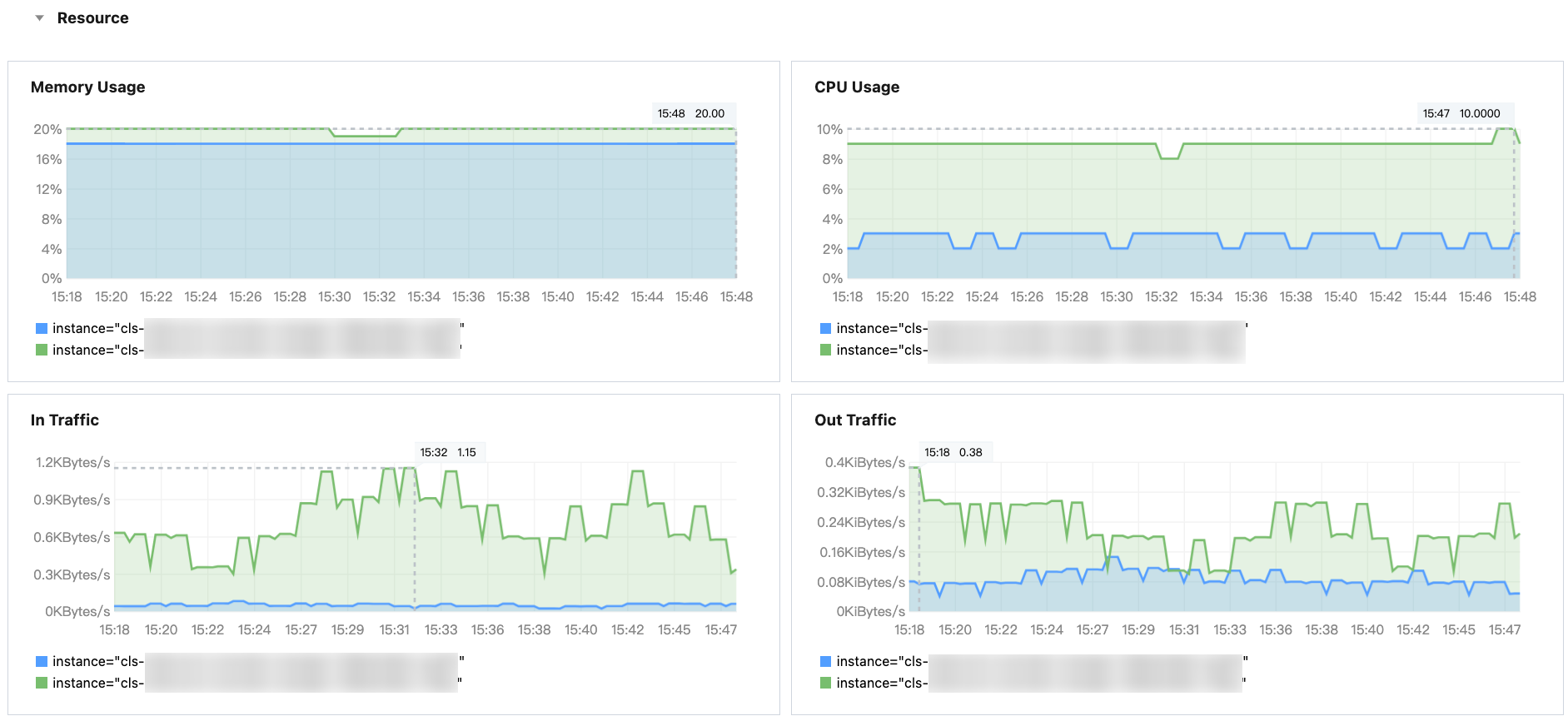 In Traffic | 入流量 | container_network_receive_bytes_total | Controller Manager 的网络入流量。单位:Bytes/s。 |