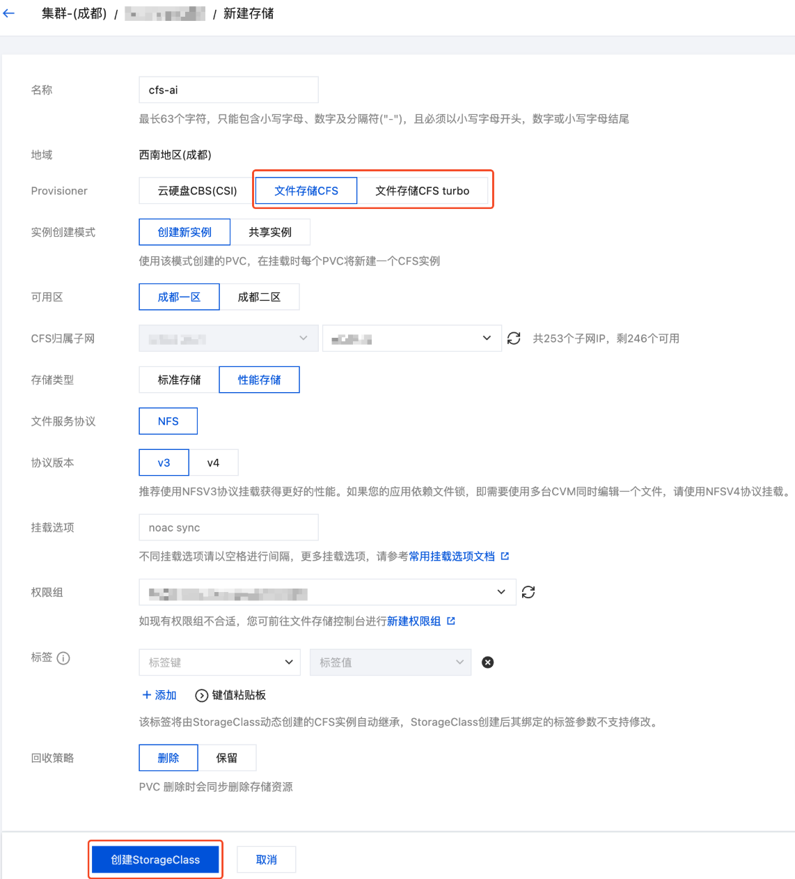 apiVersion: v1kind: PersistentVolumeClaimmetadata:name: ai-modellabels:app: ai-modelspec:storageClassName: cfs-aiaccessModes:- ReadWriteManyresources:requests:storage: 100Gi