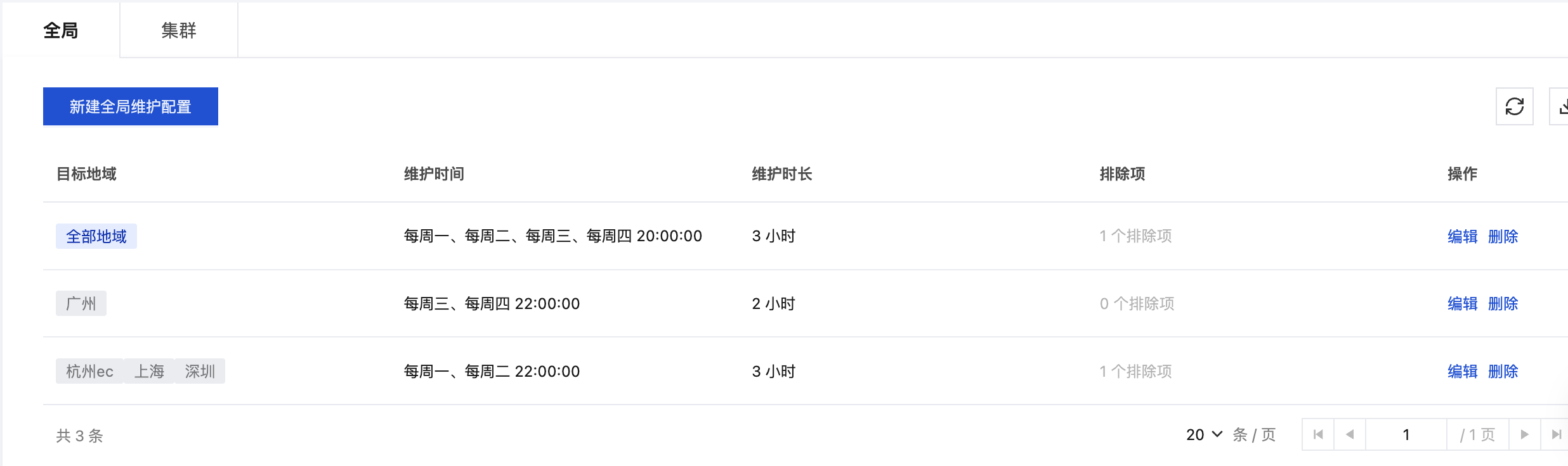 维护窗口:集群维护窗口优先级高于全局维护窗口,集群最终生效的维护窗口为 集群维护窗口 的配置。