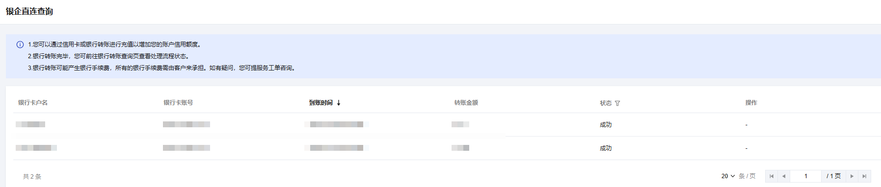 根据您的专属银行收款账户信息,您可发起线下对公打款,系统会自动检测对应云账号进行充值,请您打款前务必填写正确。