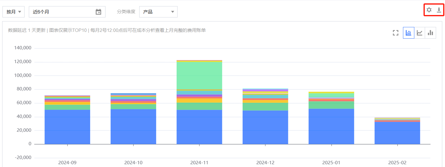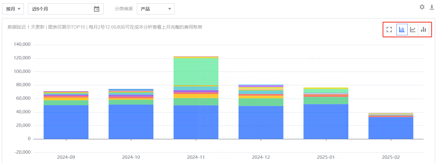 每月2号12:00后可在成本分析查看上月完整的费用数据。