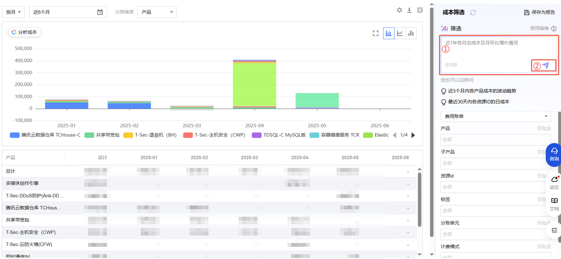 成本分析是成本管理体系的基础功能,协助您灵活高效的分析账单数据,清晰透明地了解您的上云成本。同时,腾讯云推出成本管理 AI 功能,成本管理 AI 以成本分析 AI 筛选为起点,以技术革新释放每一分云资源价值,让云财务管理更简单,更智能。