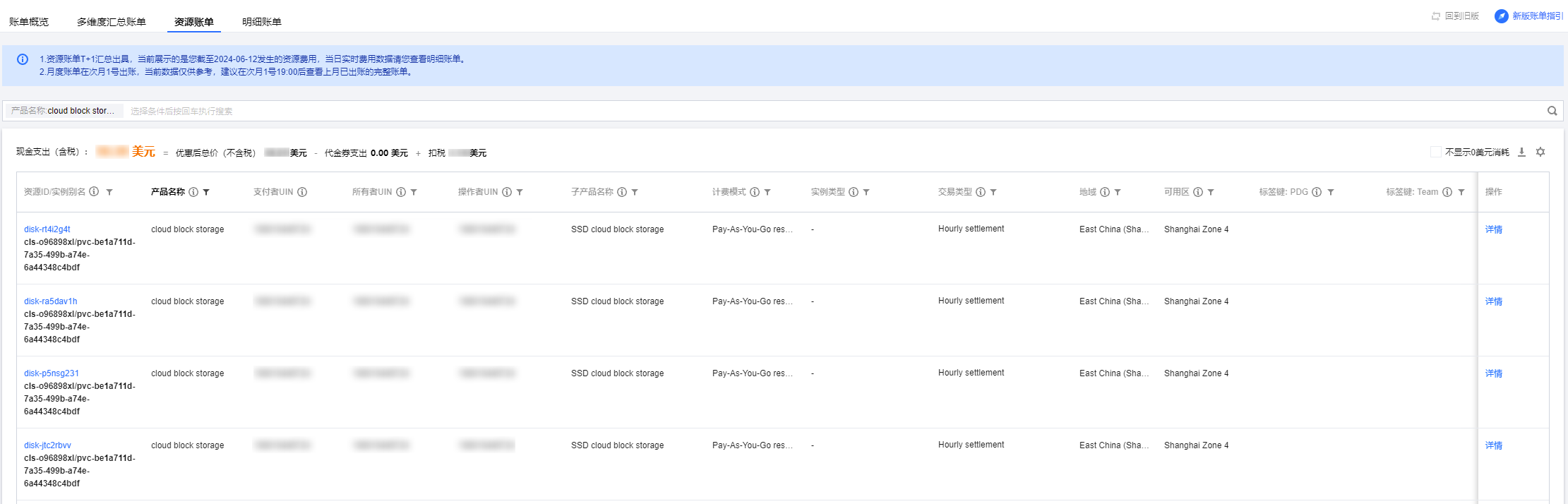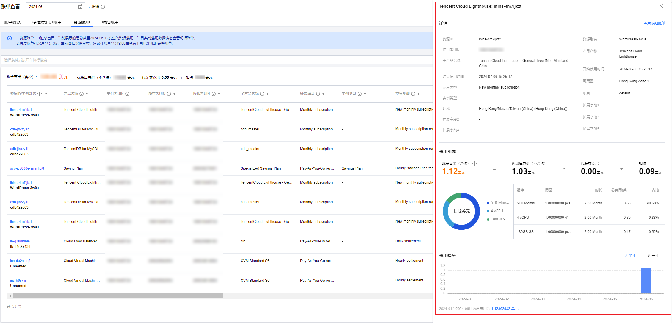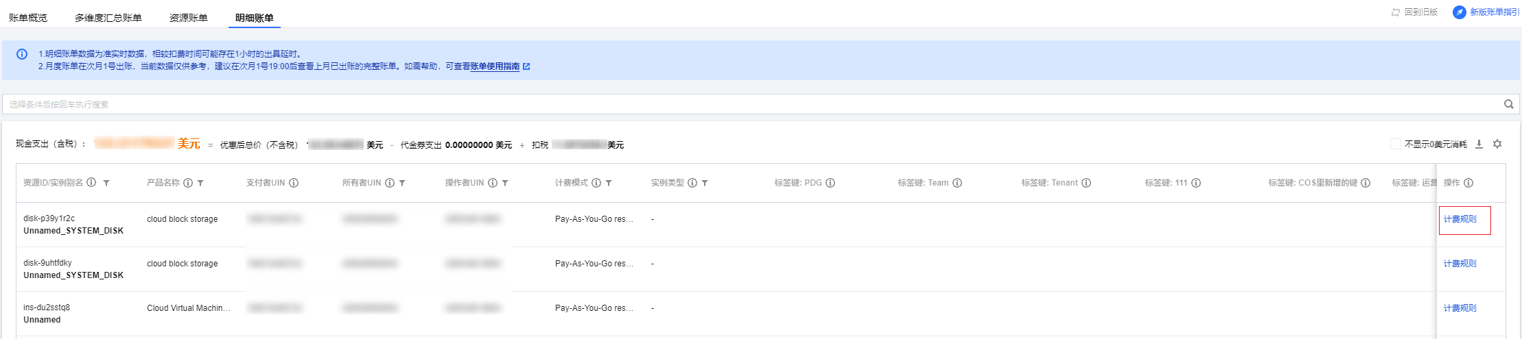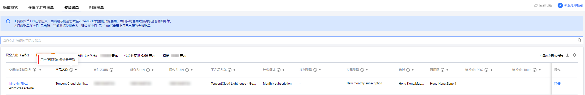 资源账单是根据资源 ID 维度进行汇总的账单金额,为您提供更丰富的账单数据,帮助您更细致的了解云上费用。