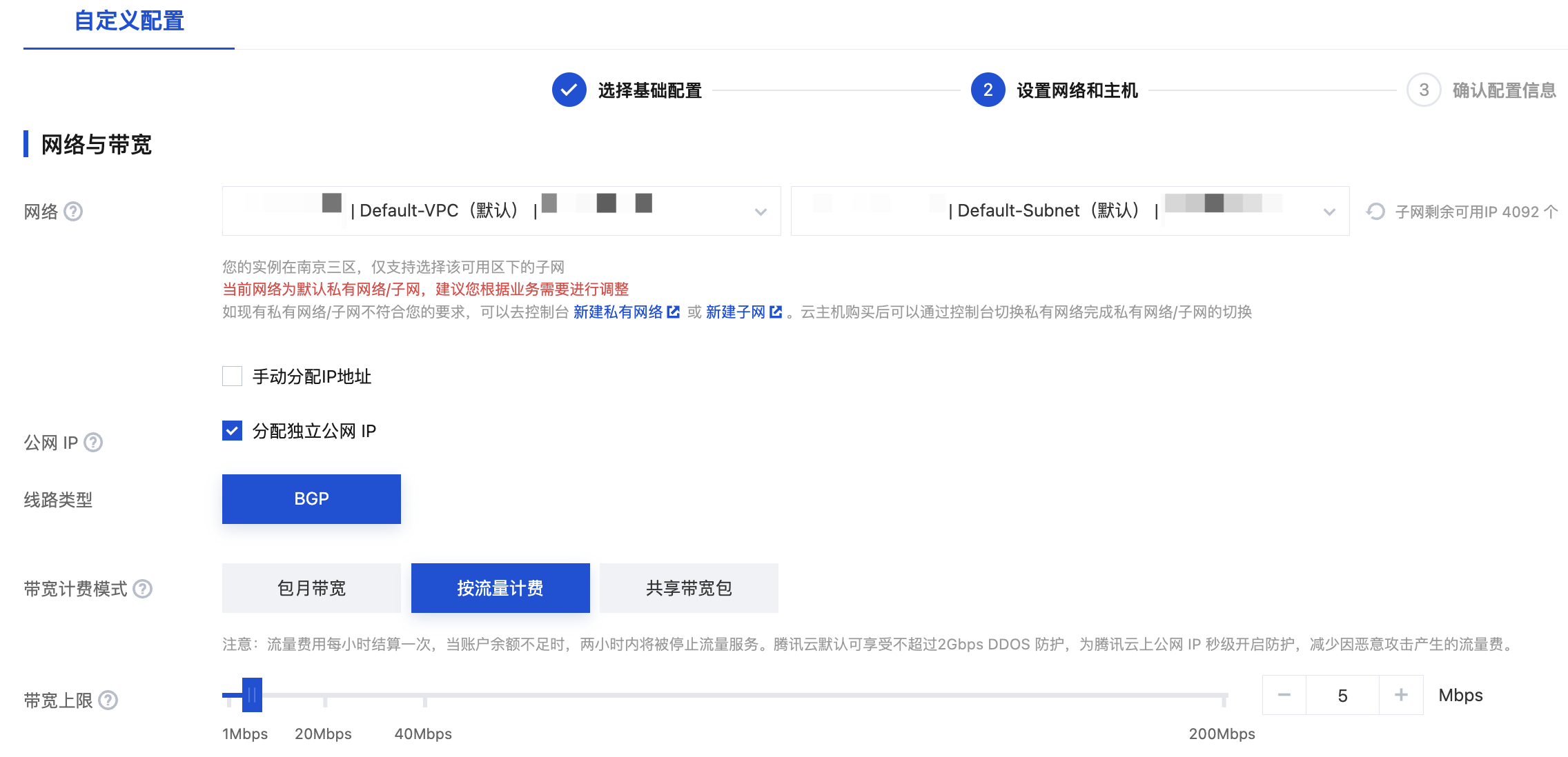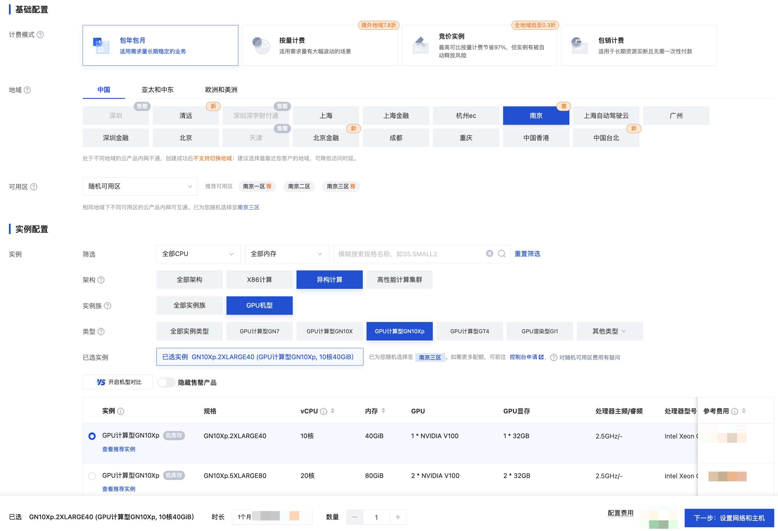 步骤2:选择计费模式、网络、地域与机型